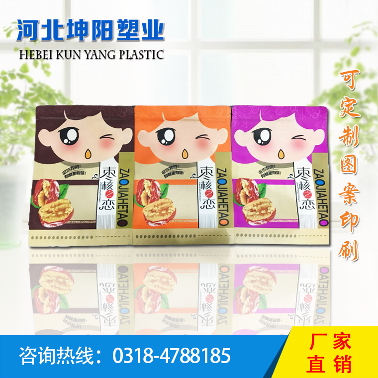 ? ? ? ? 河北坤陽塑業有限公司是一家集定制,設計,印刷于一體的包裝袋生產企業,本公司擁有十色印刷機、高速復合機、制袋機等設備,專業生產食品袋、真空袋、拉鏈自立袋、鋁箔袋、火鍋調料袋、奶食品袋、醬菜袋、五邊封袋、高溫蒸煮袋、UV印刷復合袋、易揭封口蓋膜及各種包裝復合膜、超市專用手提袋、手撕袋、托盒等。公司歡迎各界人士前來咨詢洽談。